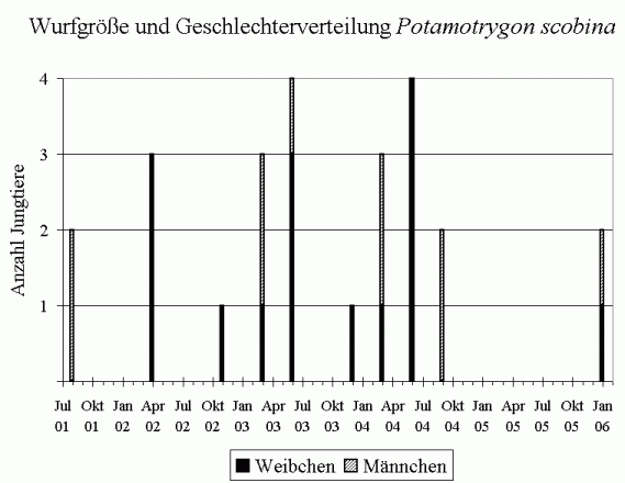 Von 2001 bis Anfang 2006 habe ich die Art Potamotrygon scobina gezüchtet.