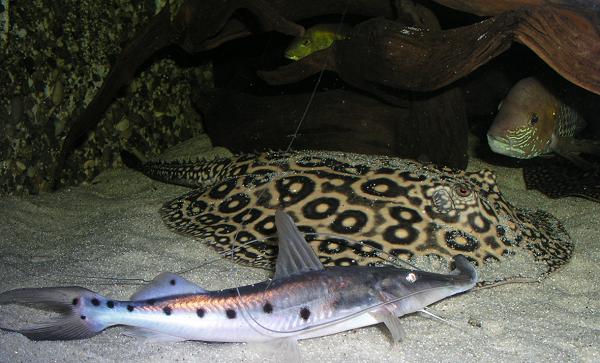 Anstelle der fasciatum habe ich ein Platystomatichthys sturio gekauft. Er ist auch ein sehr interessanter und schöner Wels. Seine Endgrösse von 40cm hat er schon fast erreicht.