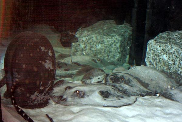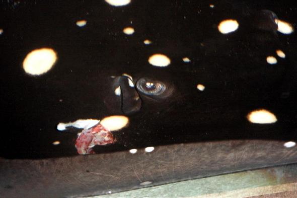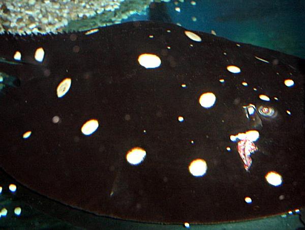 Ich bin wie immer Nachmittags zu meinen Rochen gegangen um zu überprüfen ob alles in Ordnung ist. Als ich dann das Männchen gesehen habe, hat mich der Schlag getroffen. Denn er hatte eine recht große klaffende Wunde unter dem rechtem Auge. Er wird wohl wieder zu aufdringlich gewesen sein, denn sonst sticht mein Weibchen nicht zu. Aber bis jetzt ist er vor jeder Geburt von ihr gestochen worden, und es verheilte immer ohne jegliche Medikamentenzugabe gut.