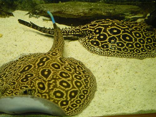 Die Fütterung von Perlenrochen gestaltet sich sehr schwierig, da man sie an das ungewohnte Futter erst noch gewöhnen muss. Das Männchen, welches schon vor längerer Zeit importiert wurde, frisst Muscheln, Mehlwürmer und Shrimps. Beim Weibchen gestaltet sich die Fütterung jedoch schwieriger da sie erst seit 30.August unser Becken bewohnt.