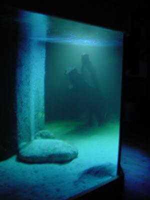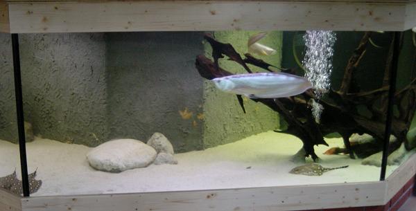 Im Becken sind zwei große Stücke Mangrovenholz und mehrere Steine. Bei der Einrichtung wurde jedoch darauf geachtet nicht zuviel Bodenfläche zu verbauen, um den Tieren so viel freien Raum wie möglich zu geben.