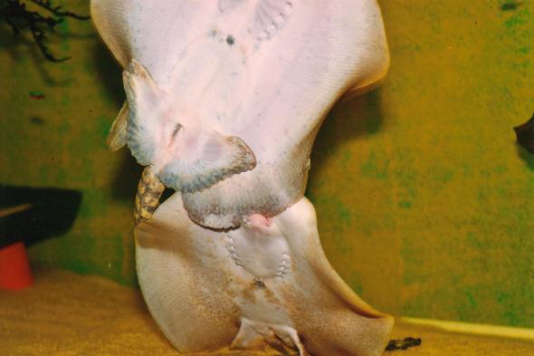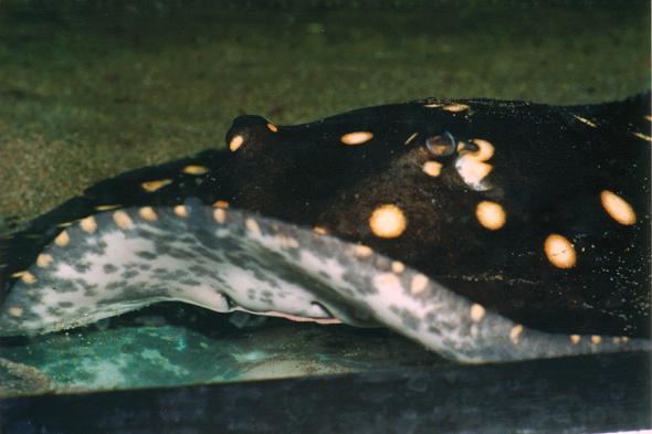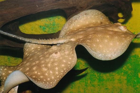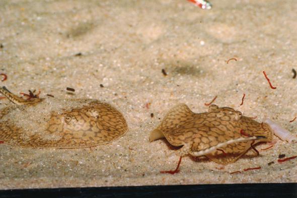 September 2001 Potamotrygon scobina, Jungtiere und Weibchen mit zerbissener Flosse