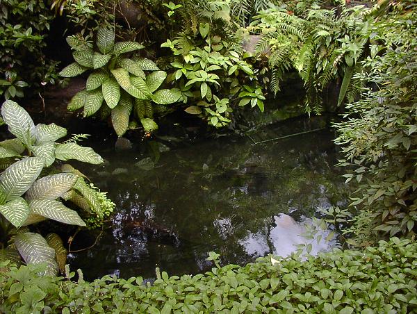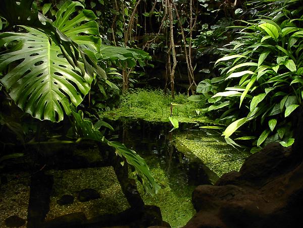 Im Bush - der Teich mit den Potamotrygon motoro und Brillenkaimanen
