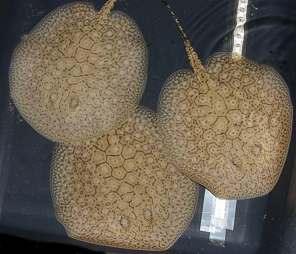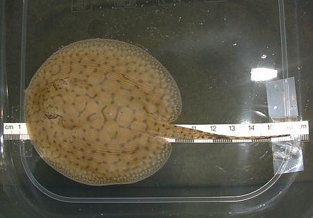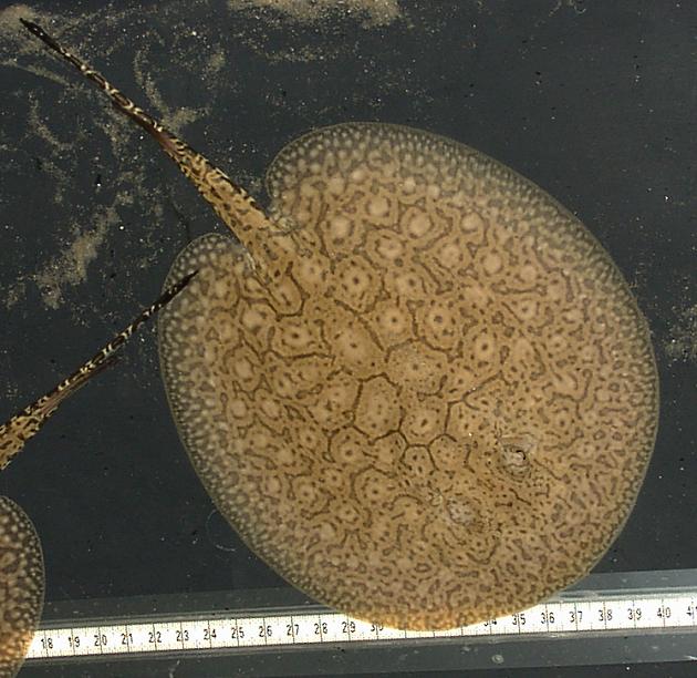 Ich habe für den kleinen Rochen wieder einen Teil des Beckens mit einer Plexiglasscheibe abgetrennt, was sich schon bei der letzten Nachzucht bewährt hat. Direkt am Tag der Geburt habe ich das Tier fotografiert, gewogen und gemessen.