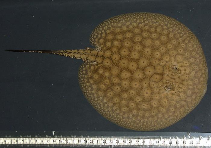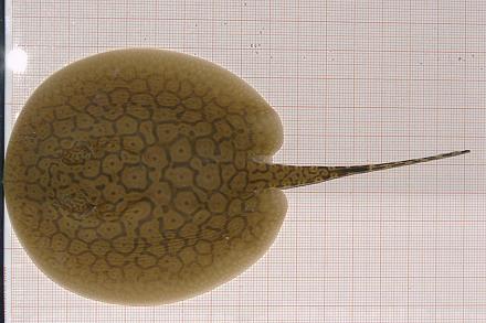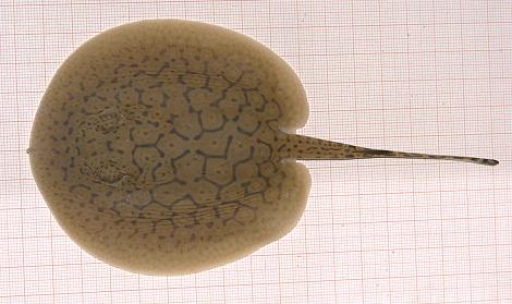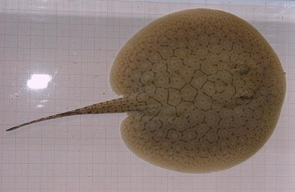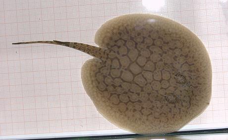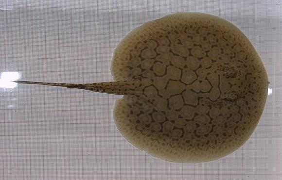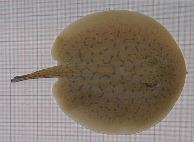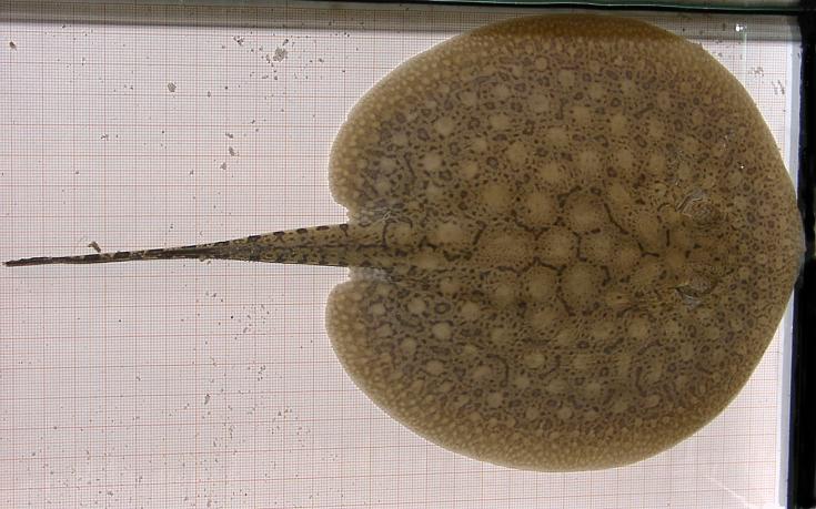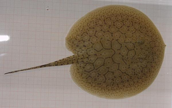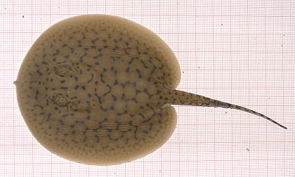 Ein Rochen mit ungewöhnlich vielen schwarzen Punkten in den Augenflecken.