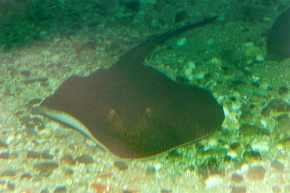 Soweit stoßen erwachsene Rochen über die Wasseroberfläche hinaus.
