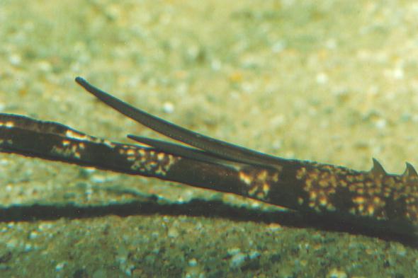 P.reticulata (?) Schwanz mit Stacheln, der untere Stachel ist der neue Stachel, der obere
