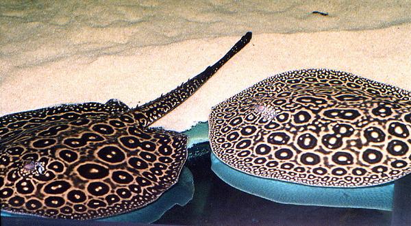 Aber nach einer Woche war das vergessen. Die beiden Rochenarten vertragen sich gut untereinander, wobei die beiden Perlenrochenweibchen natürlich noch nicht geschlechtsreif