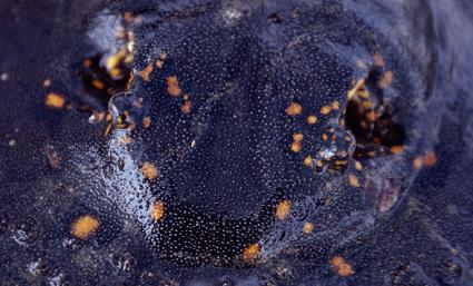 Das Tier hat einen Durchmesser von 94 cm und ist ein Weibchen. Auffällig sind die großen Dornen auf der Körperscheibe, die auf den Aufnahmen im Bereich des Kopfes zu sehen sind. Auch die Färbung, schwarz mit orangen Flecken, ist sehr ungewöhnlich. Zu welcher Art das Tier gehört ist unklar, die P. motoro in diesem Gebiet sehen deutlich anders aus.