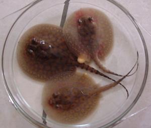 Leider gab es bei der Geburt des letzten Jungtieres Komplikationen. Es wurde zunächst nur halb herausgedrückt und das Rochenweibchen hatte anscheinend nicht mehr genug Energie um es ganz heraus zu bekommen. Nach 6 Stunden hatte sie es dann aber doch geschafft. Sie hatte sich so verausgabt, dass sie ganz bleich wurde und tragischerweise 2 Stunden später gestorben ist.