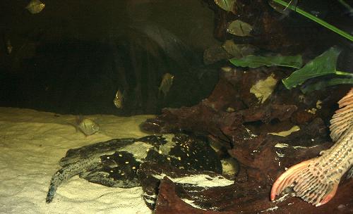 Heiko Bleher hatte einige Biotopaquarien ausgestellt, eines davon mit Rochen. In diesem Becken hatten die Rochen ausreichend Platz und Sandboden. Peter Lutz berichtete mir von seiner Begegnung mit Heiko Bleher folgendes:
